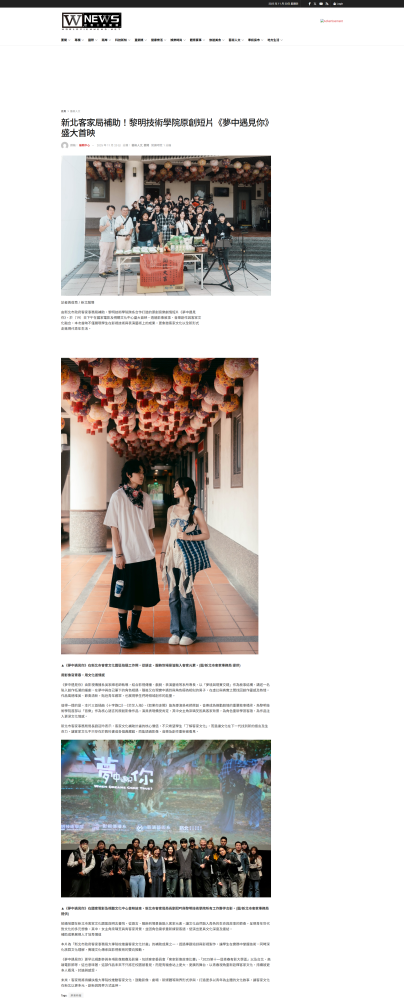 《夢中遇見你》更早已規劃參與多項影像競賽及影展,包括客家委員會「客家影像故事比賽」、「2025第十一屆青春有影大學盃」以及台北、高雄電影節等。這也意味著,這部作品未來不只將在校園被看見,而是有機會站上更大、更廣的舞台,以青春視角重新詮釋客家文化,持續被更多人看見、討論與感受。
