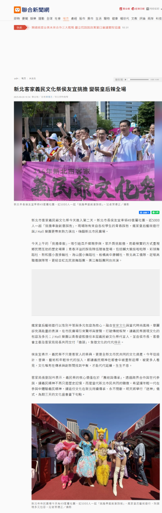 新北客家義民文化祭侯友宜挑擔 變裝皇后辣全場-聯合新聞網