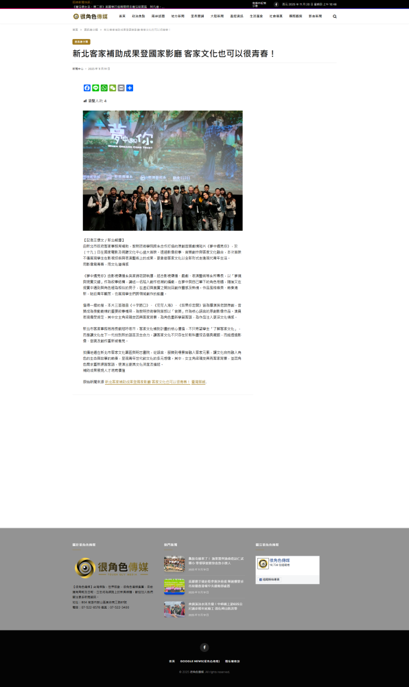 由新北市政府客家事務局補助,黎明技術學院跨系合作打造的原創音樂劇情短片《夢中遇見你》,於(十九)日在國家電影及視聽文化中心盛大首映。透過影像敘事、音樂創作與客家文化融合,本次首映不僅展現學生在影視技術與表演藝術上的成果,更象徵客家文化以全新形式走進現代青年生活。