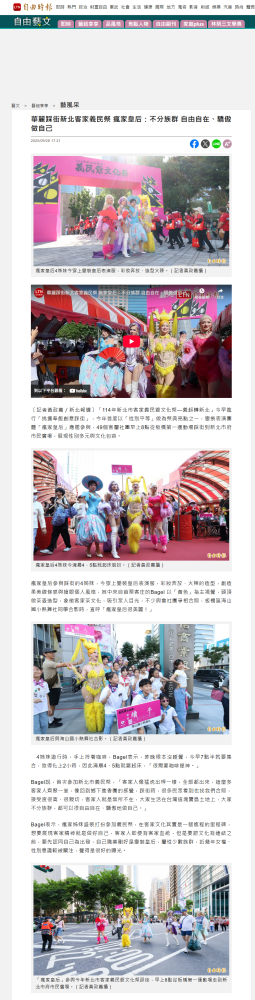 華麗踩街新北客家義民祭 瘋家皇后:不分族群 自由自在、驕傲做自己 - 自由時報