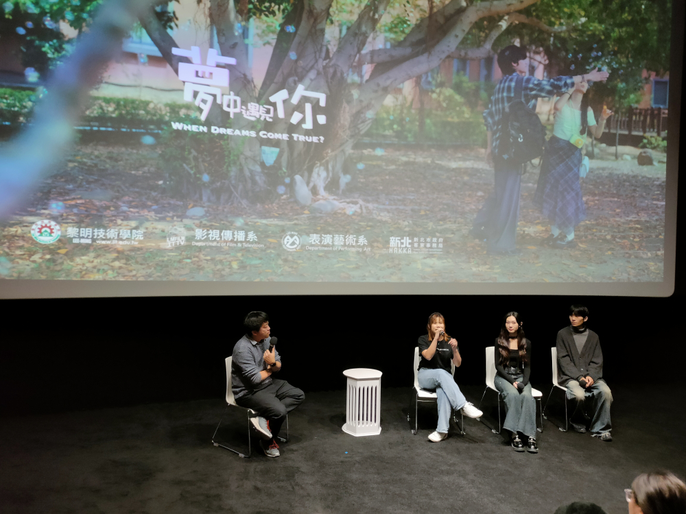 - 電影介紹:時長約22分鐘的原創音樂微電影《夢中遇見你》,內容以客家文化為核心,作品以「夢境與現實交錯」為敘事結構,講述一名陷入創作低潮的編劇,在夢中與自己筆下的角色相遇,隨後又在現實中遇到與角色極為相似的對象,在虛幻與真實之間找回創作靈感及熱情。電影配合三首歌曲《十字路口》、《茫茫人海》及《如果你走開》,風格唯美、節奏清新,貼近青年觀眾,展現學生們跨領域創作的能量。